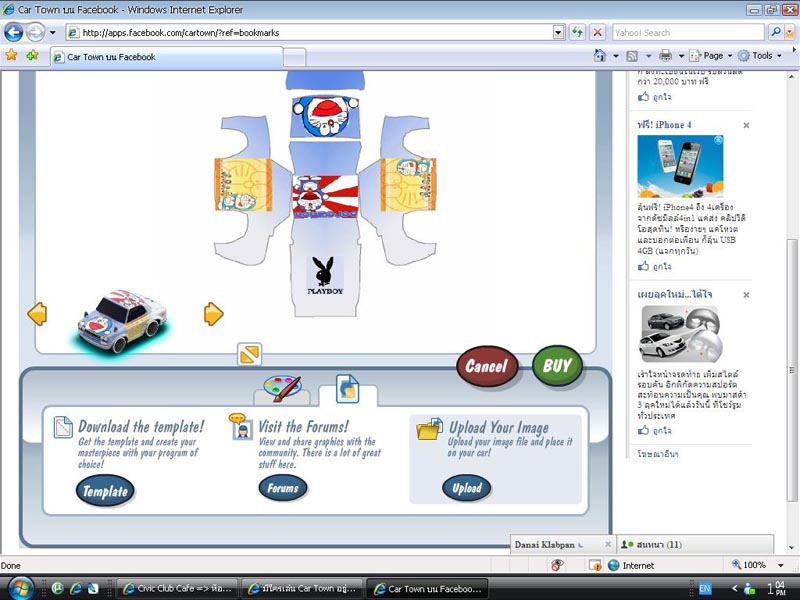 โพสเมล์ไว้เลยครับเดี๋ยวแอดเล่นกัน คนไม่เคยก็ลองเล่นดูครับขำ ๆ (แต่ติดงอมแงมเลย) ขออนุญาติอธิบายคร่าว ๆ นะครับ ขั้นต้นเข้าเฟสบุ๊คแล้วกดค้นหา car town จากนั้นเลือกเกมส์ เมื่อเข้าไปแล้วเราจะมีอู่ขนาด 10x10 อยู่ 1อู่ เอาเงินที่มีไปซื้อรถซะ วิธีเพิ่มเงิน 1.ทำงาน มีหลายอย่างตั้งแต่ติดลูกเต๋า(ประดับยนต์)จนถึงโมเครื่อง แต่ล่ะงานก็ให้เงินไม่เท่ากันและใช้เวลาไม่เท่ากัน เช่น ล้างรถได้ 40 เหรียญใช้เวลา 5 นาที/เปลี่ยนล้อ ได้ 500 ใช้เวลา 4 ชม. ทำงานนอกจากการได้เงินแล้วยังได้ค่า XP เพื่ออัพเลเวลอีกด้วย (เดี๋ยวค่อยอธิบาย) แต่บางทีเราทำงานแล้วไม่ยอมเข้าไปดูลูกค้าก็ไม่จ่ายเงินนะครับ เช่น เราล้างรถ 5 นาที แต่เราทิ้งไว้ 10 นาทีค่อยเข้าไปดู ลูกค้ามันหนีไปเลยไม่ยอมจ่ายเงิน  2.แข่งกับเพื่อน ชนะได้ 500 แพ้ไม่ได้อะไรเลย การแข่งใช้แบบแด๊ก กดครั้งแรกไฟจะนับถอยหลังกดอีกครั้งเพื่อออกตัวเมื่อไฟเขียว จากนั้นเข็มไมล์จะวิ่งให้กดให้พอดีกับขีดแดง ถ้าเลยจะติดลบ ถ้ากดพอดีคะแนนจะคูณ 2 กดทั้งหมด 3 ครั้ง(เกียร์) สุดท้ายเข้าเส้นชัยคะแนนใครมากกว่าชนะไป คะแนนคิดจากแรงม้าเรากับการสัมพันธ์ของการกดปุ่ม(เปลี่ยนเกียร์) การแข่งเป็นแบบแข่งใครแข่งมันแล้วจะเอาคะแนนรอบนั้นมาวัดกัน บางทีถ้าเค้าแข่งไปนานแล้วเราเปิดอู่มาจะมีรถของคู่แข่งมาเบิ้ลเครื่องท้าเราที่หน้าอู่  (ชอบมากกกกก) 3.อีเวนท์ต่าง ๆ (โชว์รถ/นำเที่ยว) อันนี้คงไว้เวลาคนที่ไม่มีเวลาเล่นเพราะแต่ล่ะอันใช้เวลาเป็นวันครับ จากนั้นนำเงินที่ได้มาแต่งรถ สร้างอู่ ขยายอู่ ตกแต่งอู่ การอัพเลเวล เพื่อ ซื้อของใหม่ ๆ ซื้อรถใหม่ ๆ ขยายอู่ เพิ่มลูกจ้าง ฯลฯ แล้วจะอัพได้ยังไง? ก็ทำงานต่าง ๆ ที่ได้ค่า XP TIP 1.การแข่งได้ 10 ครั้งต่อคนต่อวัน 2.เวลาแข่งถ้ากดชิงไฟได้หรือเปลี่ยนเกียร์ตรงเดทลายพอดีก็จะได้โบนัสคูณ 2 (แต่ก็สี่ยงฟลาวและติดลบ.....ของผมประจำเลย  ) 3.เมื่อเล่นแรก ๆ ให้แอดเพื่อนไว้เป็นเด็กอู่เยอะ ๆ และไม่ต้องสนใจแต่งอะไรเก็บตังซื้อ "ฮอย" อย่างเดียวเพราะมันเป็นตัวทำเงินให้เราเลยล่ะ 4.เล่นไปซักพักจะมี Test Drive ให้เราเอามาเล่น อย่าไปแต่งเด็ดขาดเพราะเราใช้ได้แค่ 7 วัน (เอาไว้ส่งพิซซ่า) มีรายละเอียดและคำสั่งอื่น ๆ อีกเยอะครับ ยังไงลองเล่นดู แล้วมาแชร์ ๆ กันดีกว่า แอดมานะครับ s_onsub@hotmail.com note_naughtyclub@hotmail.com