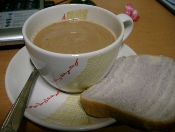 กาแฟร้อนๆ กะหนมปังปิ้งสองแผ่น