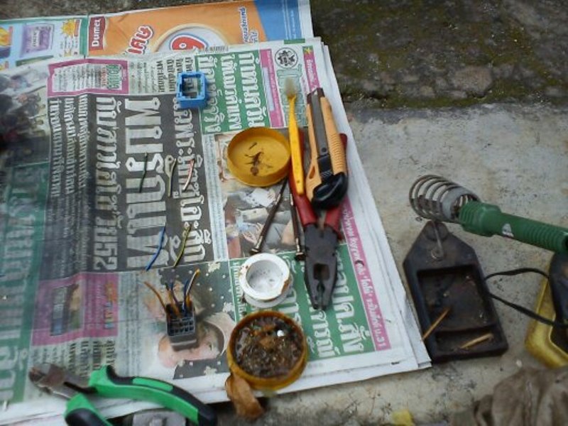 5. นำปลั๊กใหม่ มาบัดกรีเข้ากับชุดสายจากตัวรถ
