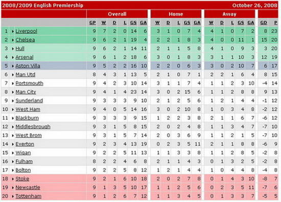พรีเมียร์ลีก ? ตุลาคม ปี 2008