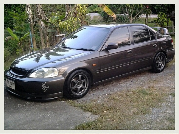 log in : jam-maew Driver : Maew Car : Civic ek 96 Vtie ------> up to ----> 98.8 ( 96+99 ) Front 99, Rear 96 Engin : D16Y8 ------> up to ----> B20B MT Muffler : FGK auto spec ------> up to ----> FGK MT spec 2.0" Susp : Standard+Merwed ------> up to ----> Cusco Wheel : 17"x7" with 205/40/17 ------> down to ----> TE37 15" with 195/50/15 Fog light : JDM Stanley ------> down to ----> non F Skirt : Type R ------> up to ----> Mugen F Strut Bar : dc2 ------> down to ----> Ek9 R Skirt : Mugen R Bumper : Lev R Wing : Dc2 Interior : Sir seat Type R parking break cover MOMO steering wheel