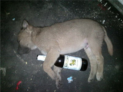 คิดดูขนาดน้องหมาที่อู่ ยังดื่มซะเมาปลิ้นเลยย    เชื้อเจ้าของอู่มันแรงจิงๆ  ตามภาพปะกบ  จากกองพิสูจน์หลักฐาน