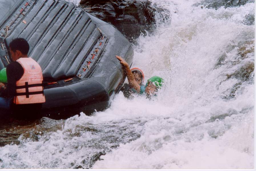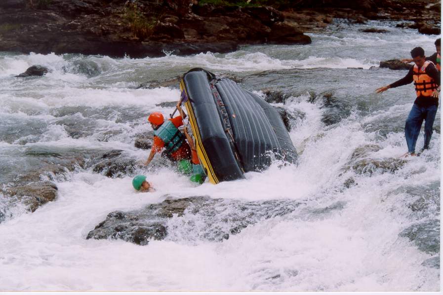 สตาร์ทออกมาได้แค่แก่งแรก เรือก็คว่ำตามรูปครับ จมน้ำไปอยู่ใต้ท้องเรือ 3 คน รวมทั้งผม