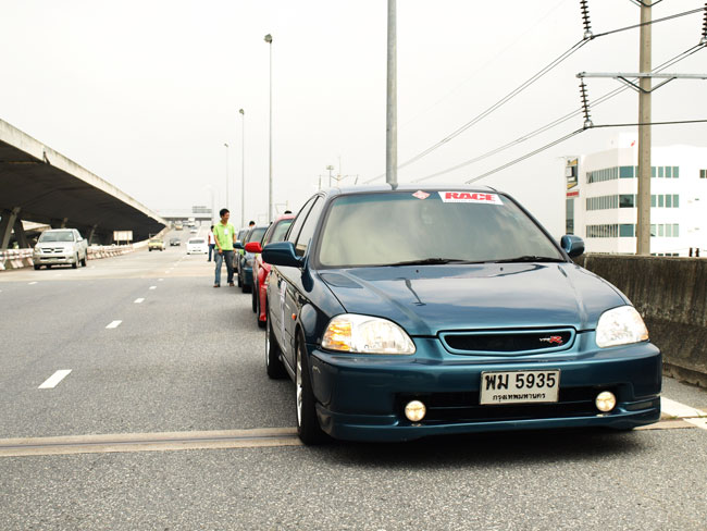 รอขบวนตอนลงด่วนบูรพาวิถึ  ครั้งนี้เป็นการเคลื่อนพลได้สวยงามมากที่สุดเลยครับ ขับกันเป็นระเบียบเรียบร้อยมากๆ  ยี่สิบกว่าคันวิ่งเป็นขบวนอย่างสวยงามจากบางพลี เลย   ลังเล