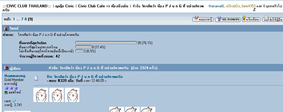 :::CIVIC CLUB THAILAND:::  |  คุยคุ้ย Civic  |  Civic Club Cafe => ห้องนั่งเล่น  |  หัวข้อ: ใครคิดว่า น้อง P J u n G หื่ นช่วยโหวตครับ 0 สมาชิก และ 1 บุคคลทั่วไป กำลังดูหัวข้อนี้