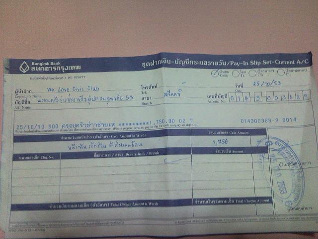 เงินบริจาคเพิ่ม           100  บาท  ( โอนเรียบร้อย 25/10/2010 )