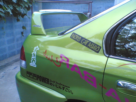 คุณโก้  วันก่อนเจอหนังสือ  เทคนิคแต่งรถ เล่มที่ 175 ประจำเดือน ก.พ. ปี 2006 หน้าที่ 38-40 ไม่ทราบว่าเป็นรถคุณโก้ป่าวครับ  สีเขียว สติกเกอร์ลาย The Fast คาดด้วยคำว่า Balimost  แต่ผมว่าน่าจะใช่นะครับ เพราะข้างหลังกระโปงที่ตีตู้เครื่องเสียงมีคำว่า D.J. system ด้วย