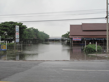 แต่เมื่อคืนถนนที่จะมาร้านข้าวน้ำท่วมออกมาถึงถนนเป็นช่วง ๆ แล้วครับ