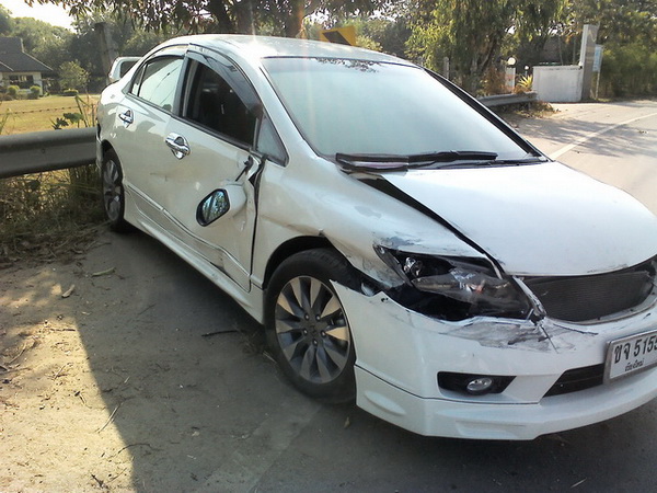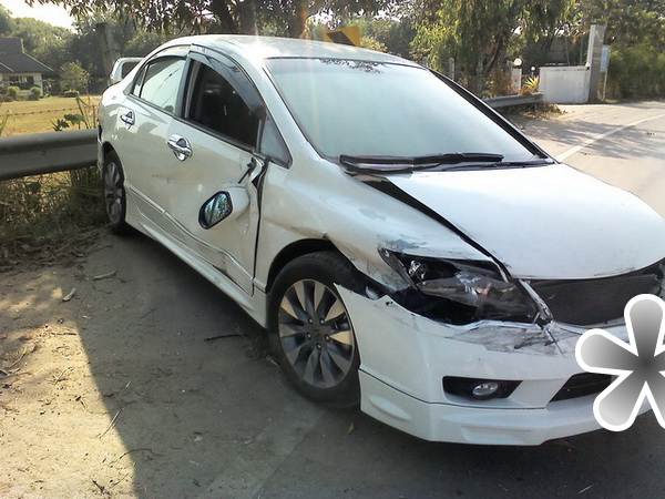 เมื่อวันที่ 14 ที่ผ่านมาได้ขับรถเลียบทางคันคลองชลประทาน ด้วยความเร็ว 120 Km/h พอถึงทางโค้งหน้าศูนย์ มช แม่เหี๊ยะเจอรถคันหนึ่งได้ขับปาดหน้าแต่ไม่พ้นเลยสะบัดมาโดนด้านหน้ารถผม ก็เลยเบรคแล้วไหลชนเสาไฟฟ่า + ราวเหล็กข้างทาง และแล้วรถคันดังกล่าวก็ได้ขับหนีไป เห้อๆๆๆคนเราขับรถไม่มีน้ำใจเลย สภาพรถ