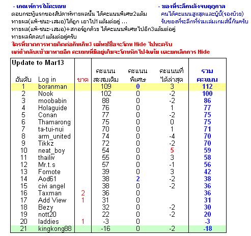 ใครที่ขาดการทายติดต่อกันเกิน3 แม็ทช์ชื่อจะโดน Hide ไปนะครับ