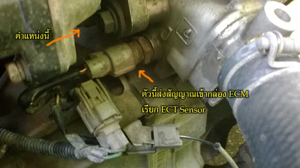 ต่อให้อีกนิดครับเป็นเกร็ดความรู้ ถ้า ECT sensor ส่งค่าไปบอกกล่องไม่ถูกต้อง เครื่องร้อนจะตายบอกกล่องว่ายังไม่ร้อน นอกจากกล่องไม่สั่งให้พัดลมทำงานแล้ว ยังกินน้ำมันอีกครับ เซ็นเซอร์ทุกตัวจะส่งข้อมูลไปบอกกล่อง ข้อมูลที่กล่องได้รับมันไม่ถูกต้อง อุณหภูมิน้ำมีผลต่อการฉีดน้ำมัน ถ้ากล่องรับข้อมูลว่าน้ำยังไม่ร้อนนะ มันก็ฉีดน้ำมันมาก ถ้ามันรับรู้ว่าร้อนแล้ว มันก็สั่งฉีดน้ำมันน้อยลง เป็นเรื่องของระบบอิเลคทรอนิกส์รถยนต์ครับ
