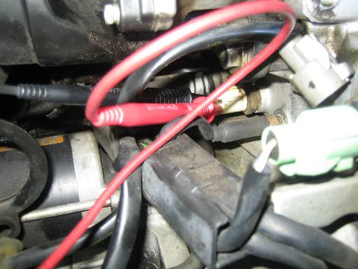 และทำการดึงปลั๊กอของ Unplug  ECT sensor และใช้มิเตอร์จิ้มทั้งสีแดงและดำลองจิ้มที่ตัว   Pin ของ ECT ทั้งสองตัวดู