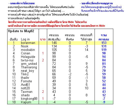 ใครที่ขาดการทายติดต่อกันเกิน3 แม็ทช์ชื่อจะโดน Hide ไปนะครับ