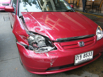 ของผมเคยโดนมา คือผมชนคันหน้าแล้วก็โดนเสียบท้ายอีกคัน (ผมอยู่กลาง)