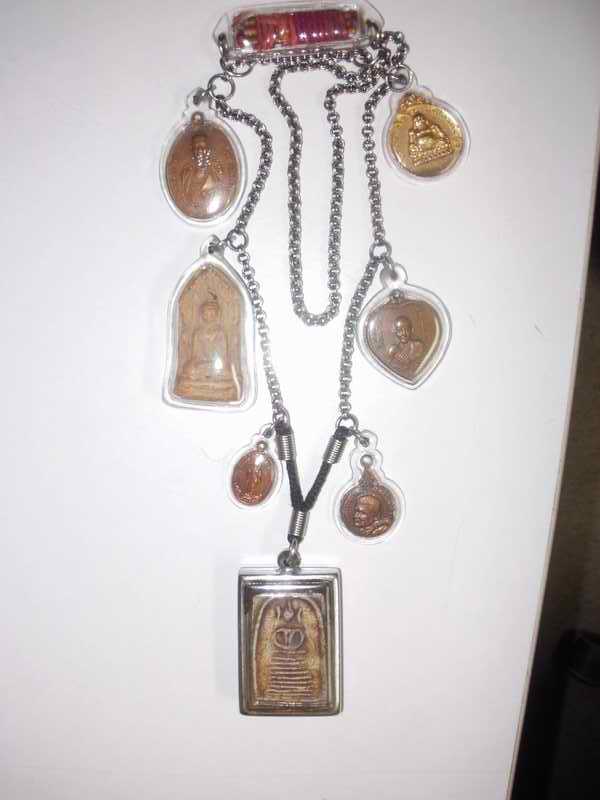 อยู่นราธิวาส ห้อยเสด็จปู่ ร.5 รุ่นปราบฮ้อ , หลวงพ่อโสธร รุ่นกระเบื้องหลังคาโบสถ์ , หลวงพ่อทองกลึง , พระกันปืน(คนเล่นเค้าเรียกยังงี้) , พระพุทธวิเศษ , ตระกุดเก่าสมัยสงครามโลก ในเสื้อเกราะมียันต์อาจารย์หนูอีก 1 ผืน