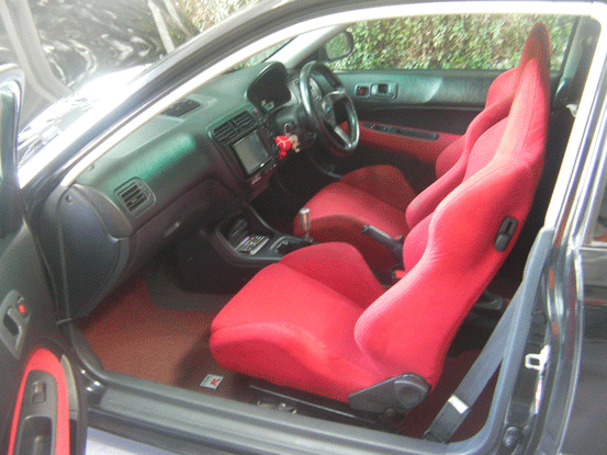 ภายใน /เบาะแดงๆ แท้/ พรมชิ้นแดงๆ/ แอร์ 3 ปุ่ม/ ไมล์ sir/ พวง personal /HKS timer/ e'spec vtec control/ ครอบเกียร์ type r/เบาะหลังหุ้มใหม่